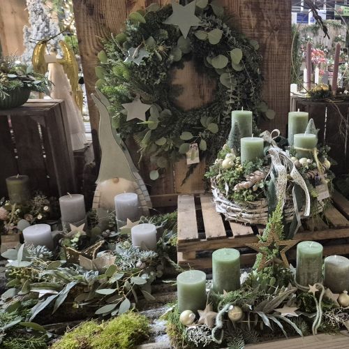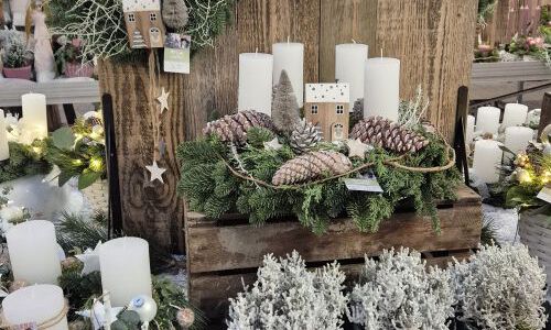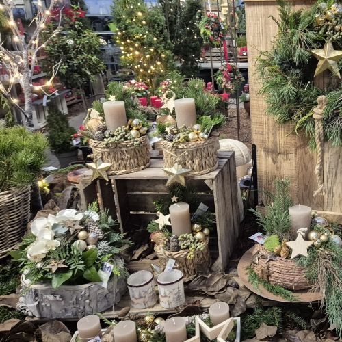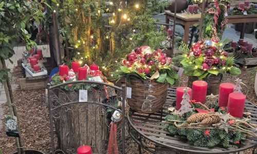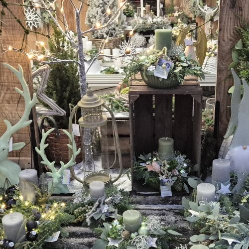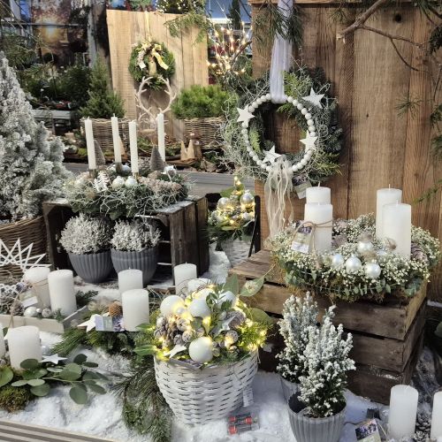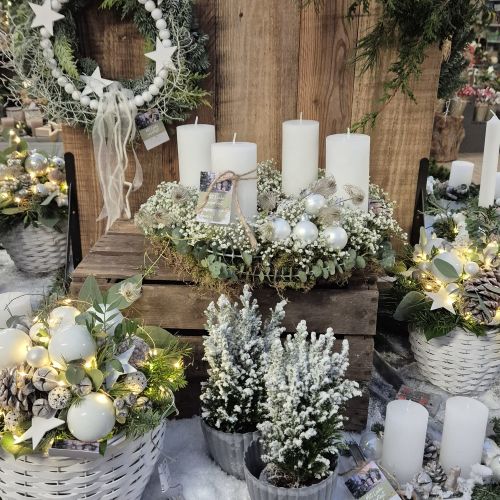 Einzigartige handgemachte Adventsgestecke, Türkränze, strahlende Blumenarrangements bis hin zu dekorativen Pflanzen für innen und außen sowie Accessoires verstecken sich in jedem Bereich unserer Gärtnerei.
